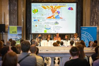 “Climate change and urban heat stress” was the topic of the 11th “Environmental Dialogue” on May 28 at the NHM Vienna. Experts from the fields of environmental medicine, psychology, law, and politics discussed measures for cities such as Vienna with the audience. Mathew White gave the keynote speech, and welcoming remarks were provided by NHM Director General Katrin Vohland, ECH Co-Director Thilo Hofmann, and the Rector of the University of Vienna, Sebastian Schütze. Over 200 guests attended.